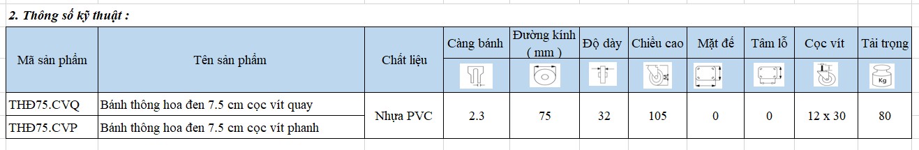 THĐ75.CVP : Bánh thông hoa đen 7.5 cm cọc vít phanh
